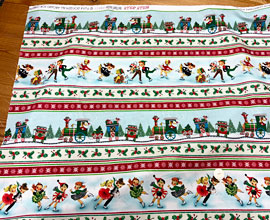 夜空のロイヤルブルーと枠の赤のがとてもきれいで、クリスマス用エプロンやバッグなどを作るのもいいですよ。1パネルのサイズは90cm、2パネル以上のご注文は繋がった状態でご用意致します。