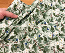 白い花とブルーベリーの実のプリント、USAコットン