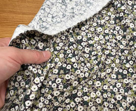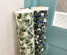 落ち着いた色合いのブーケ柄、USA modaの布です。柔らかくなめらか、しっかりとした上質なコットンです。