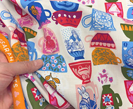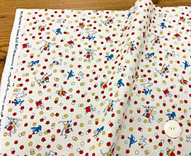 色使いの楽しいこぶたが愛嬌があって可愛い生地です。少し柄は大きめ、子供部屋のカーテン、シャツ、エプロン、バッグなどに。