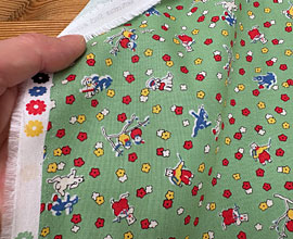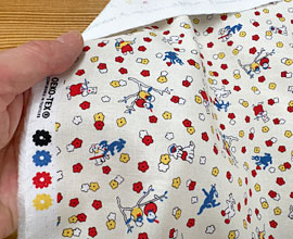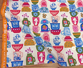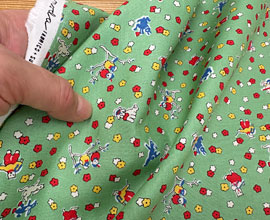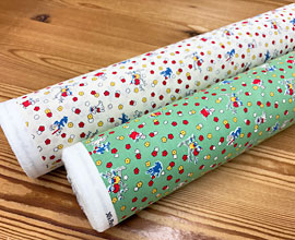 地色は明るめの生成り、濃いピンク、黄緑、水色、黄、茶など。ヴィンテージっぽさを出す為に微妙な色でプリントしています。そこが可愛いんですよね。