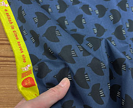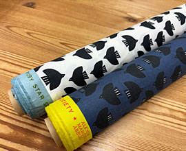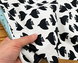 modaの質感のいいコットンに、羽根を広げ飛んでいる鳥の柄。みみも可愛いルビースターシリーズ。