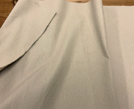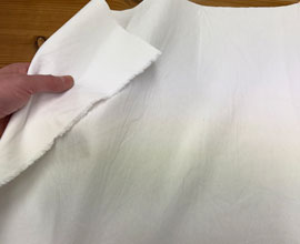 右側の写真は水通ししてアイロンをかけないで撮影しました。