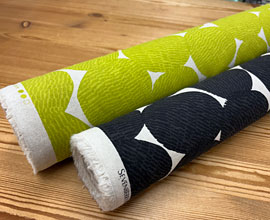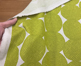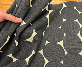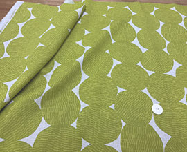 8.5cmぐらいの大きな水玉が連なったしっかりとしたコットンリネン。