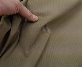 手触りのいい、つやがありしっとりした感触のナイロン撥水加工。カサカサと音がしない…というとかわりますか?
