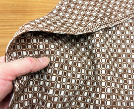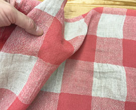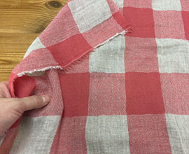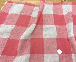 色は麻色ベージュ、ローズピンクの大きなギンガムチェック。1マスが7.5cm角。