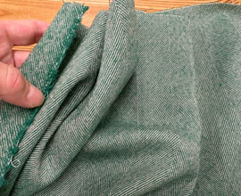 ベージュのリネンとグリーンのウールで綾織り。