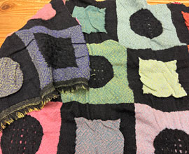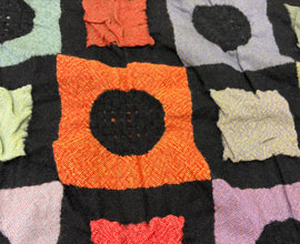 フラットな黒い部分がコットンでヨコ、タテの格子状のラインはアクリルモール糸で織られています。