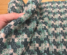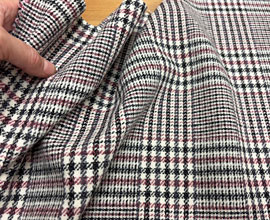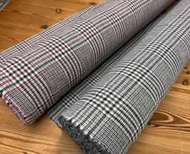 大きな千鳥格子のような柄で、柔らかくニット風に織られたジャガードウール。