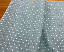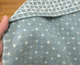 b 地色は混ざり糸のブルー、水玉はオフ白