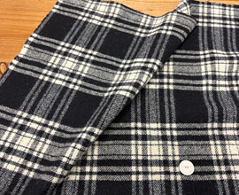 生成り、カラシ、黒の懐かしい印象のクラシックチェック。程よい厚さで肌触りのいいウール。