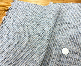 アルパカ入りの柔らかい暖かみのあるウール混ミックス素材。ペールブルー、紺、グレーにラメの混じったふんわりした質感。