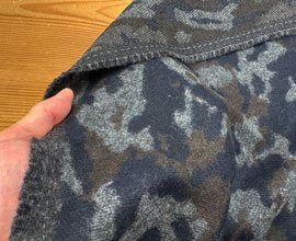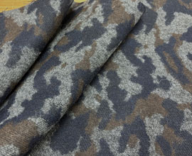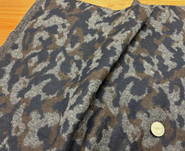 グレー、紺、茶の混ざったカモフラージュジャガード。こっくりとした色合いがいいですね。