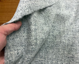 明るめのグレーですが濃淡の混ざり糸で織られています。裏地を付けてパンツ、ジャケット、コートなどに。バッグなどの小物用にクォーターカットもご用意しました。