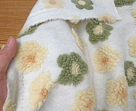 フリースに花のニードルパンチ。柄は立体的でモコモコしています。ポリエステルですがウールにみえる厚手生地なのでこちらにのせました。
